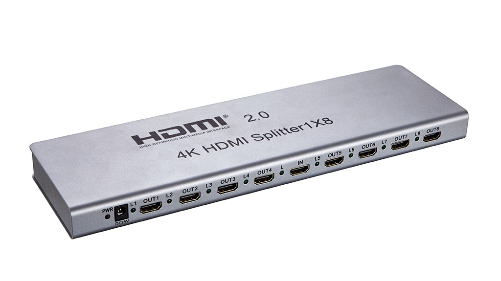 O Splitter HDMI 1×8 usa uma única fonte HDMI, acessando vários displays HDMI. Ele permite que um dispositivo HDMI seja dividido facilmente para 8 monitores ou projetores compatíveis com HDMI. O sinal HDMI é distribuído a partir do dispositivo de origem, como DVD, Receptor de Satélite, Set-Top Box, Câmera DV, Receptor A/V e outros dispositivos habilitados para HDMI para dispositivo de exibição de alta definição. Além disso, ele pode ser colocado na extremidade de um cabo HDMI longo para regenerar o sinal HDMI. A resolução deste splitter hdmi pode ser de até 4K@60Hz.